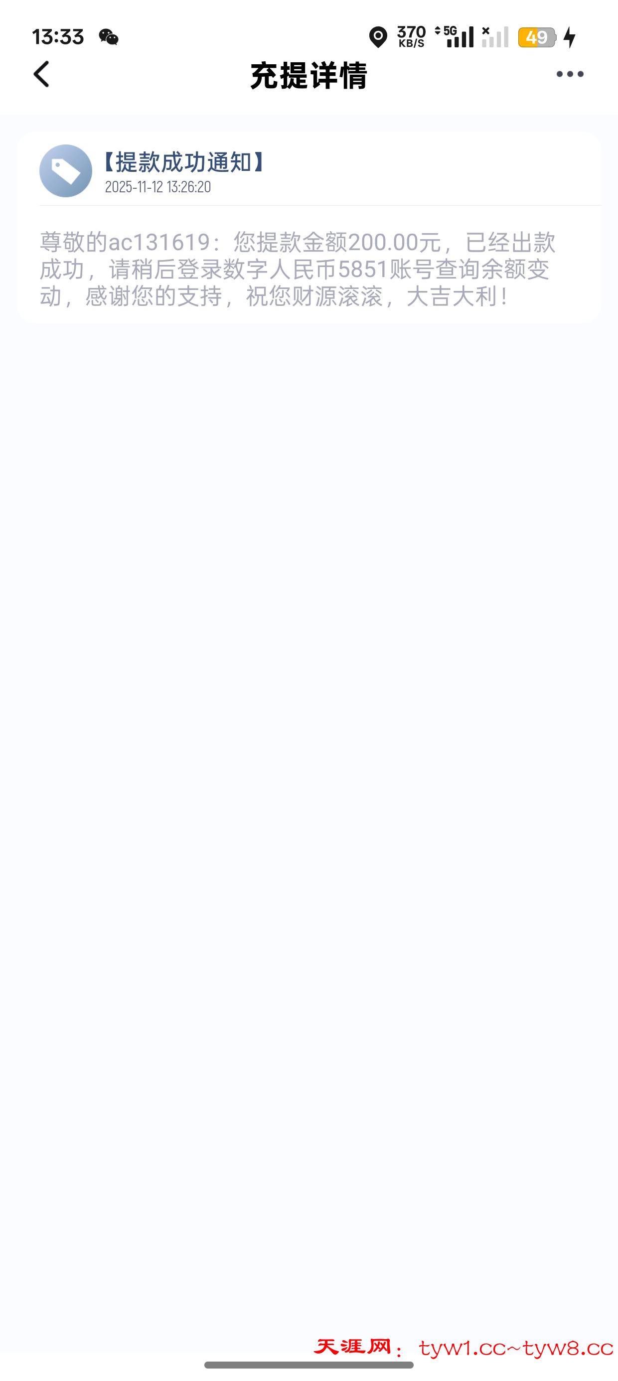 我提款到账
