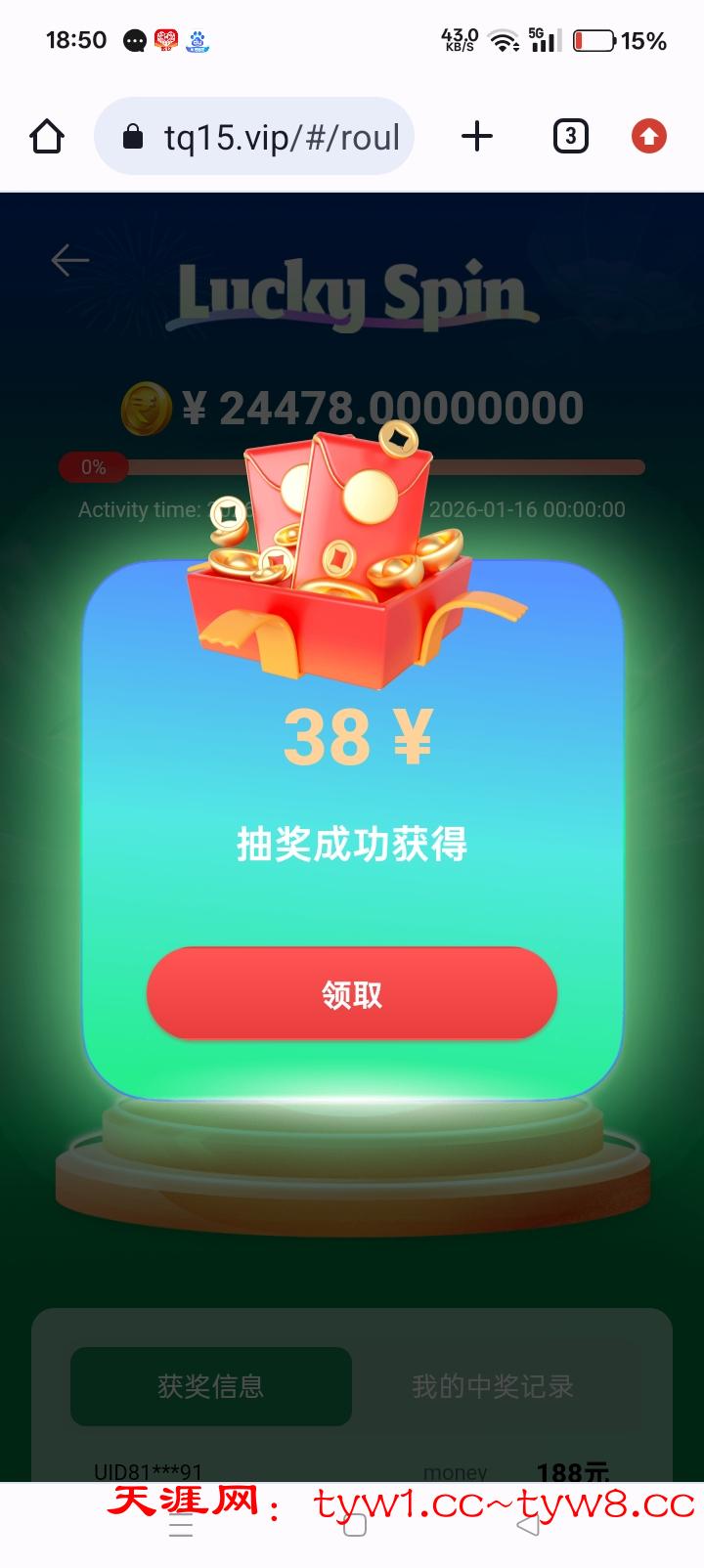 绑定手机号转轮抽奖,最少18~188