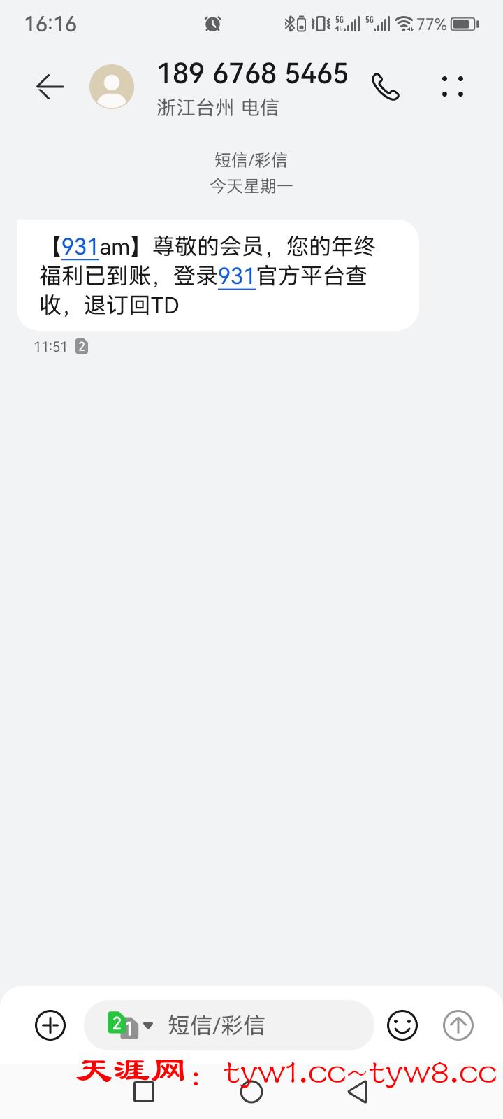 931.am 收到短信找客服