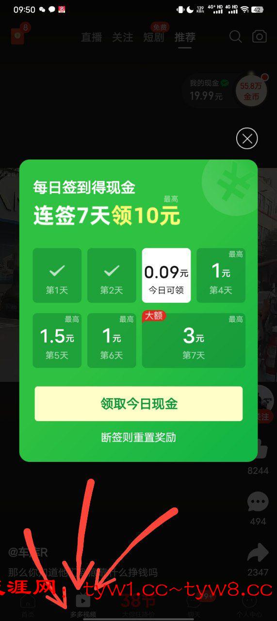 进去签到刷视频,一个星期最高可以弄10元