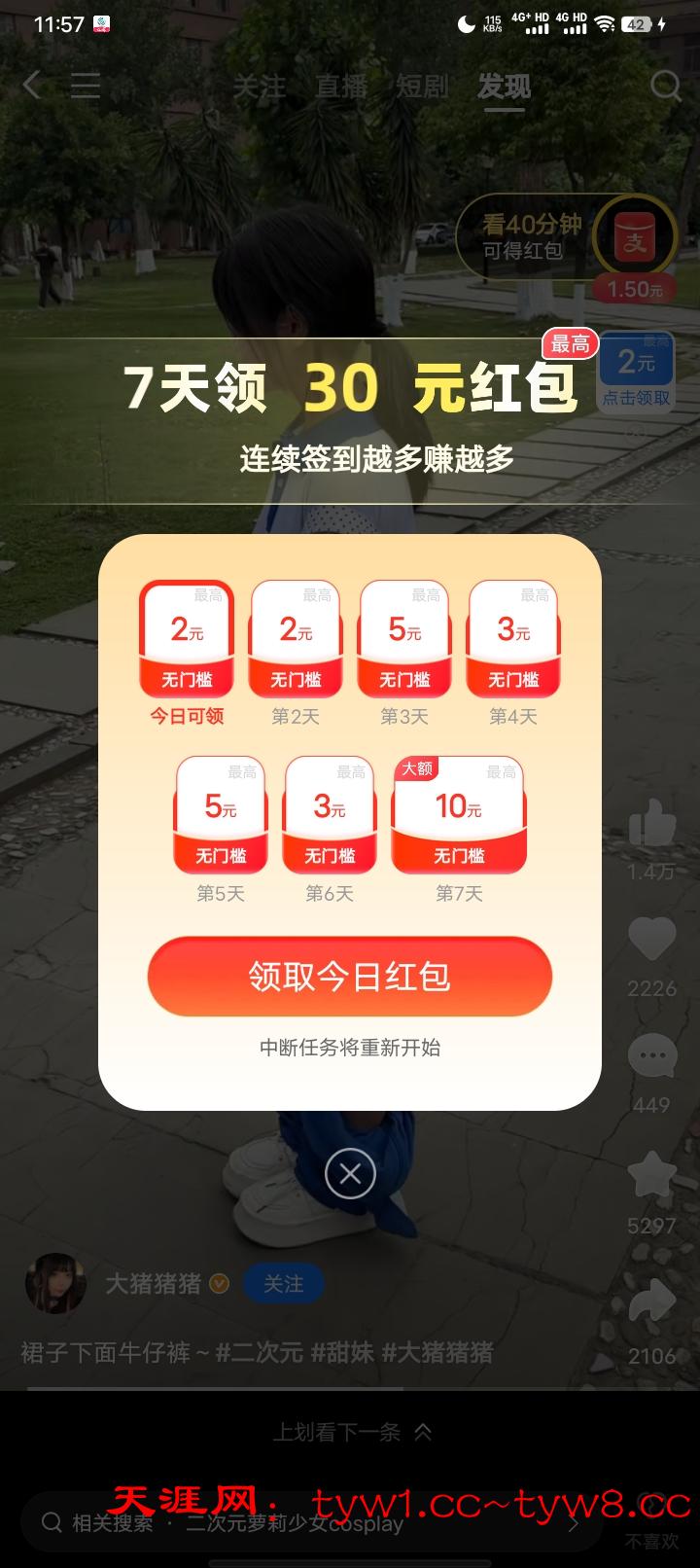 一个星期最高可以领取30