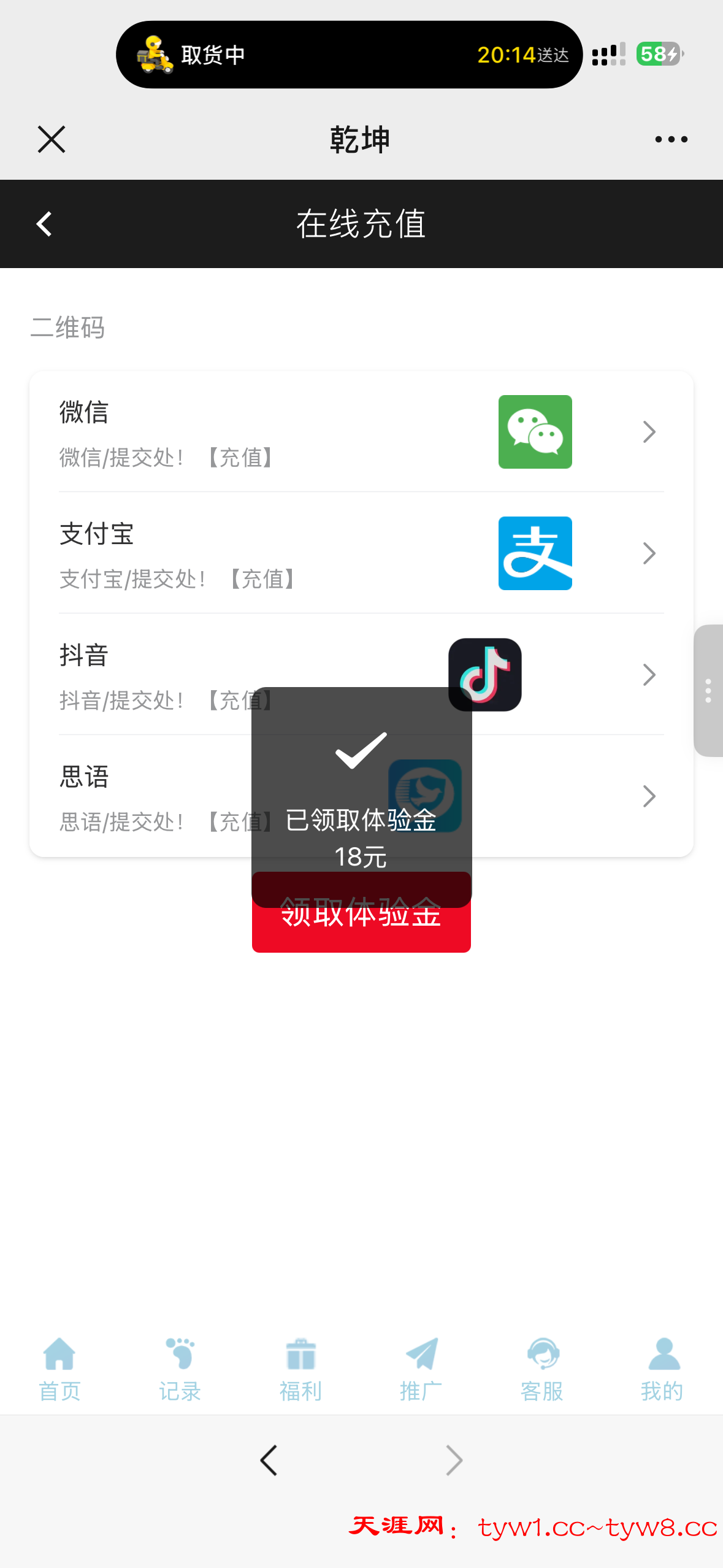 进去之后充值哪里领取体验金打上288下18