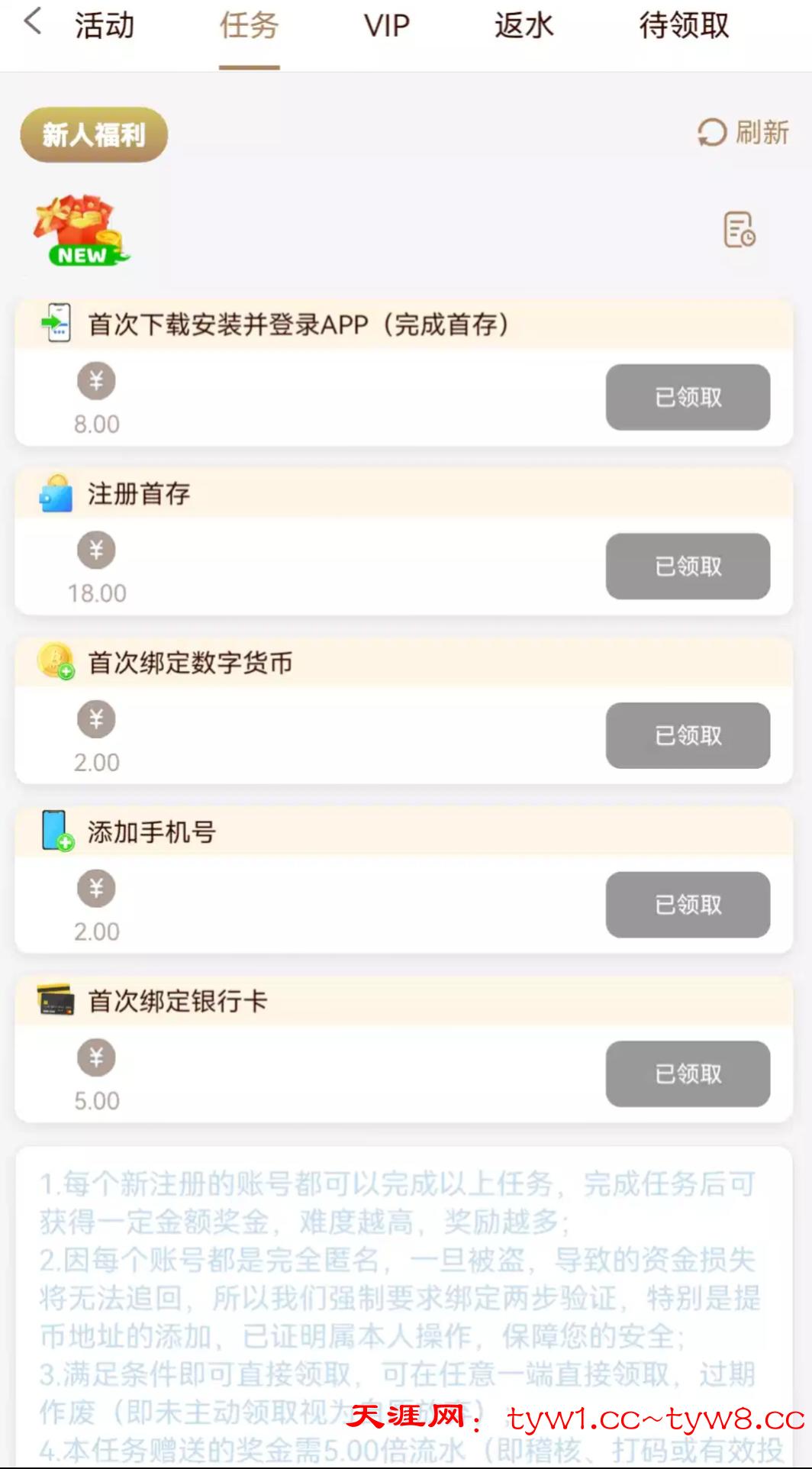 首存任务,支付宝可以最低充30。然后任务领取35。先把本金打了。再领取彩金要五杯水。我已经得吃。祝老哥们好运。