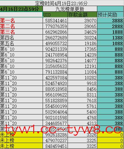 (定榜时间4月19日23点59分)只计算2000以上充值用户