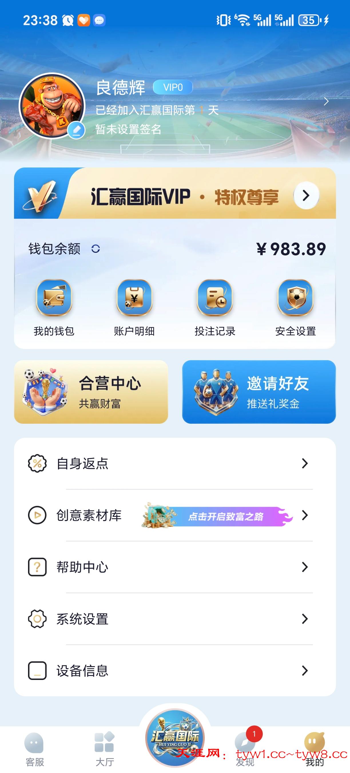 点击注册打开汇赢