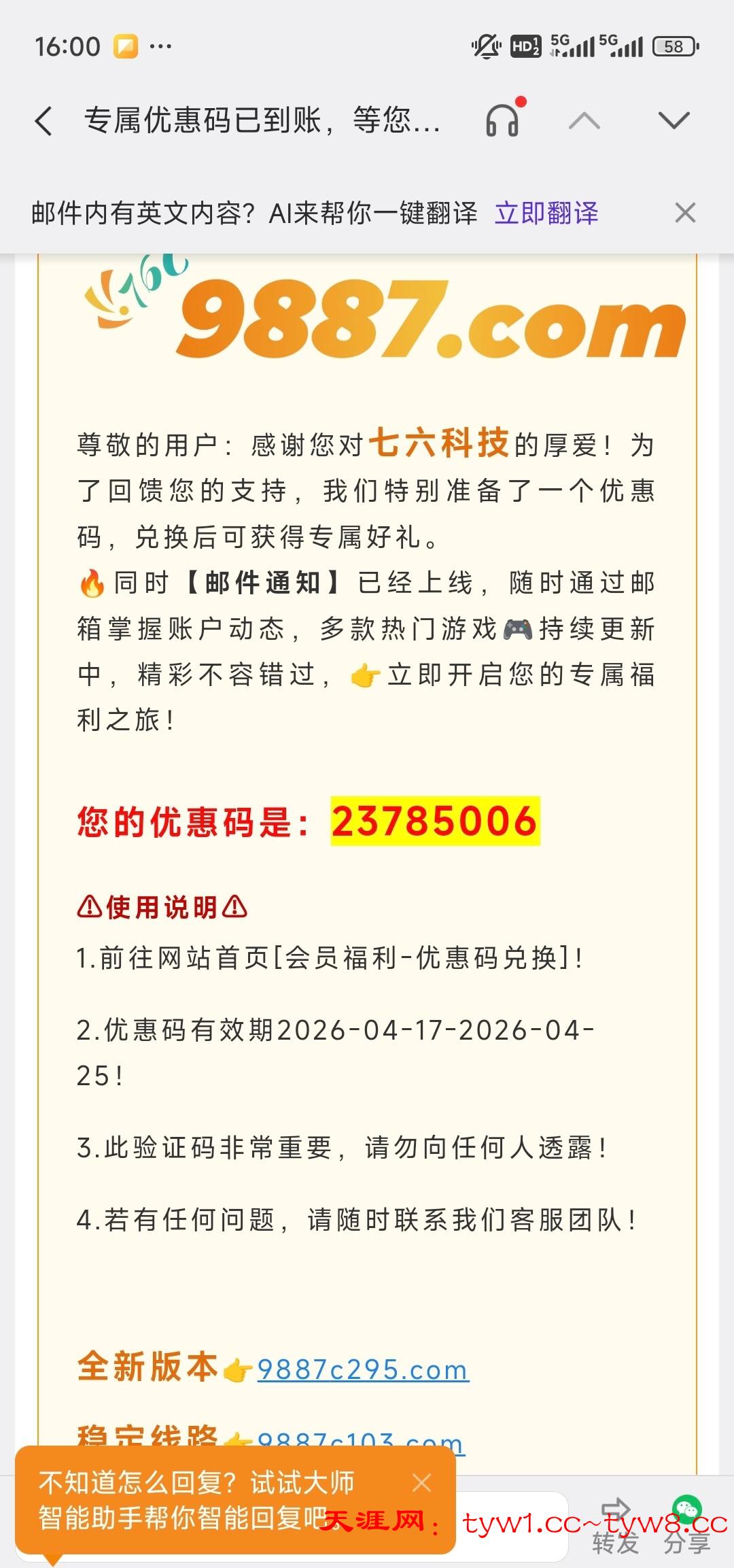 76c彩票刚刚又看到邮件彩金码,领了8还没开始玩,有的去链接9887.com