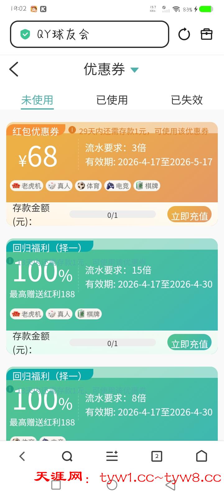 无聊上号看了一下,球友会优惠卷又刷新了,各位有号有兴趣的可以去看看哈,还有冲不冲自己决定,我就是分享一下别骂人哈!!QYH.VIP官网