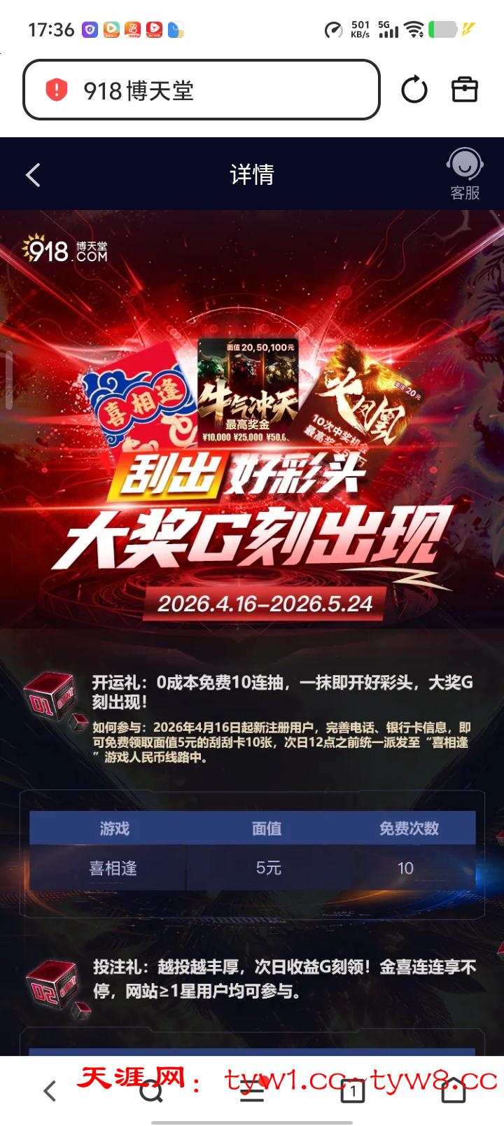 4月16号起新注册可以领5块面值的刮刮乐可以刮10次