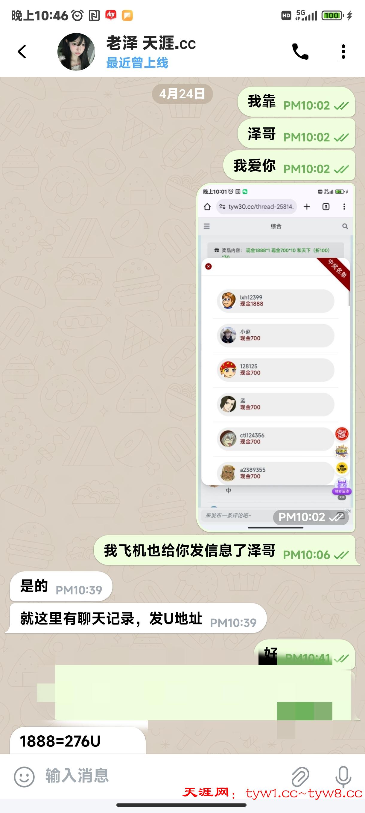 感谢天涯网,感谢泽哥,真没想到会中1888,本来打狗直接挂壁了,这月花呗都不知道怎么还,结果直接就中了,天涯网救我于水火之中,支持天涯网,下一个中大奖的就是兄弟们!